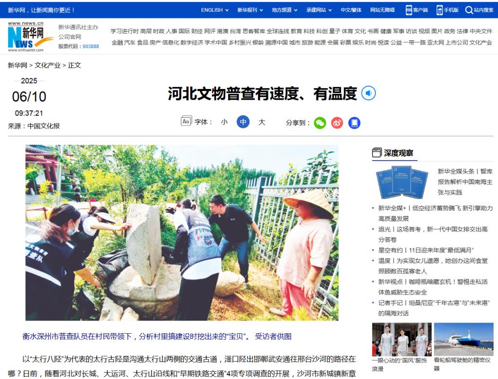 2025年3月19日,央视频以“河北秦皇岛:文物部门发现3块独有长城‘夜不收’石刻”为题,2025年6月9日,《中国文化报》第八版以“河北文物普查有速度、有温度”为题,对球王会齐甲子、冀东文化研究中心张鑫、马克思主义公司吴向宇三位文物考古专家与燕山大学、东北大学秦皇岛分校相关专家组建“考古青年”文物普查队,有针对性地对青龙河、滦河流域的新、旧石器遗址和长城沿线的石碑、石刻进行专题调研情况进行了宣传报道。2025年6月10日新华网、文旅中国新闻网等媒体均对活动进行了广泛宣传报道。