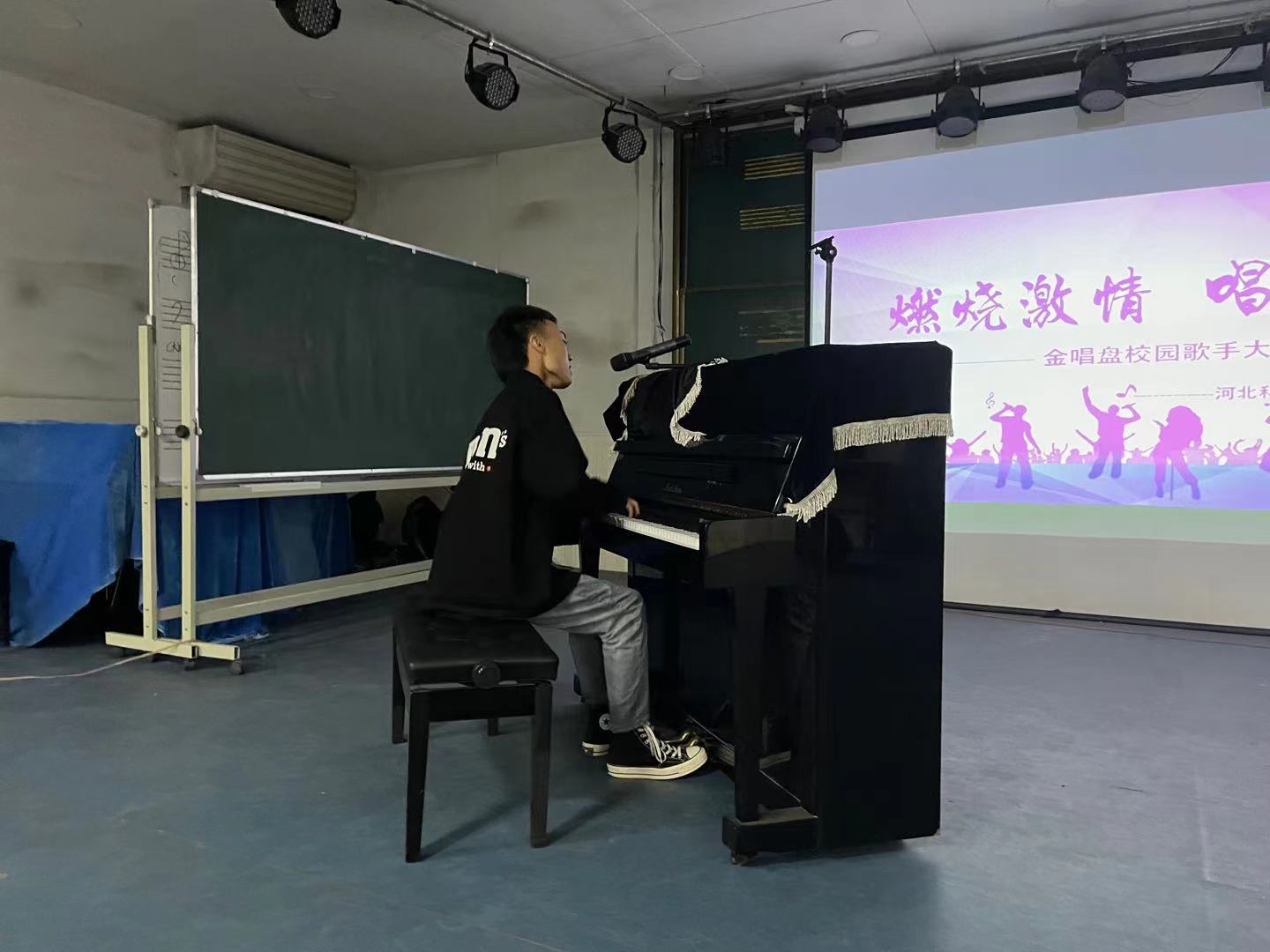为丰富校园文化生活,提升同学们的艺术表现力、感受力,发掘更多的音乐新秀,鼓励同学们勇于展示自我,2021年4月26日晚7点,球王会在艺术楼阶梯教室举办了以“燃烧激情 唱响青春”为主题的金唱盘歌手大赛球王会选拔赛。