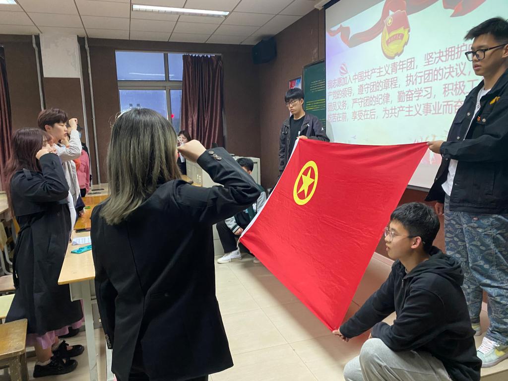 仪式上,团员们面对团旗重温入团誓词,共唱团歌,重新感受入团宣誓的庄严和神圣。团员们还观看了视频《向上的力量》,鼓励团员们积极向上,努力进步。最后,团员代表卢子妍同学在发言中表示:要时刻把爱党爱国和学习奋斗紧密结合起来,继承和发扬五四精神,脚踏实地,拼搏进取,创造属于自己的青春风采。团委书记程琳在讲话中鼓励青年团员要不忘党的嘱托,坚定理想信念,担负起自己的使命,将入团誓词铭记于心并转化为实际行动。
