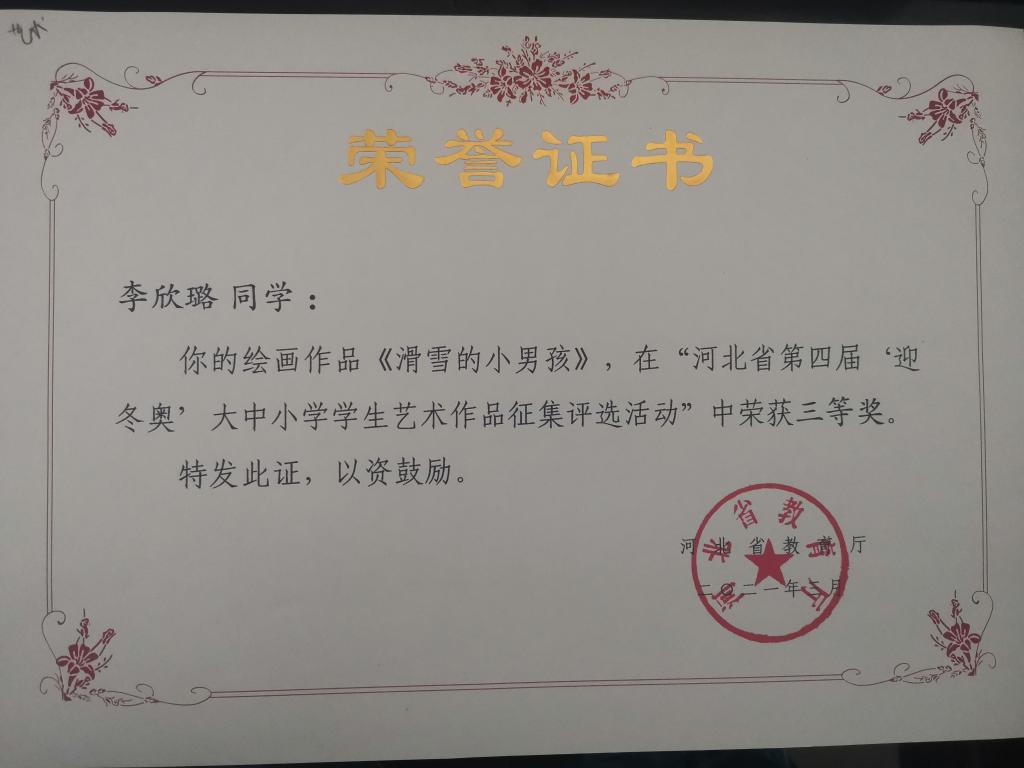 球王会师生在河北省第四届“迎冬奥”大中小学员工艺术作品征集评选活动中荣获佳绩