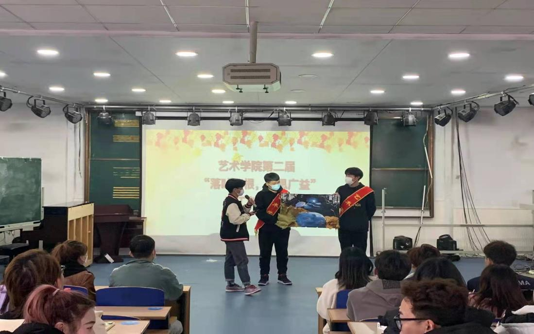 各员工组织分为8支代表队,每个代表队通过集思广益、集体创作出一件参赛作品,社团联合部的作品《绿色家园》,展示了一件特别的衣服,它通体由树叶所制,加上展示者精彩的讲解与表现,弘扬了绿色发展理念,象证着人与自然和谐共生,荣获一等奖;自律宣传部的作品《明月几许》用各种叶子拼成月亮的形状,表现对草木生命周而复始的感怀,造型优美,尽显诗意,荣获二等奖;其他作品也都各具特色,《金发少女》用各色叶子拼接成女子肖像,《秋叶蝴蝶》用树叶塑造出翩翩飞翔的蝴蝶造型,《暗夜朝阳》用纯黑色背景与清晨朝阳的对比,象征着疫情所带来的黑暗和不屈的生命所闪耀的光芒,《星空》把绘画与立体塑造相结合,营造出一种城市与星辰大海对比的梦幻之感。