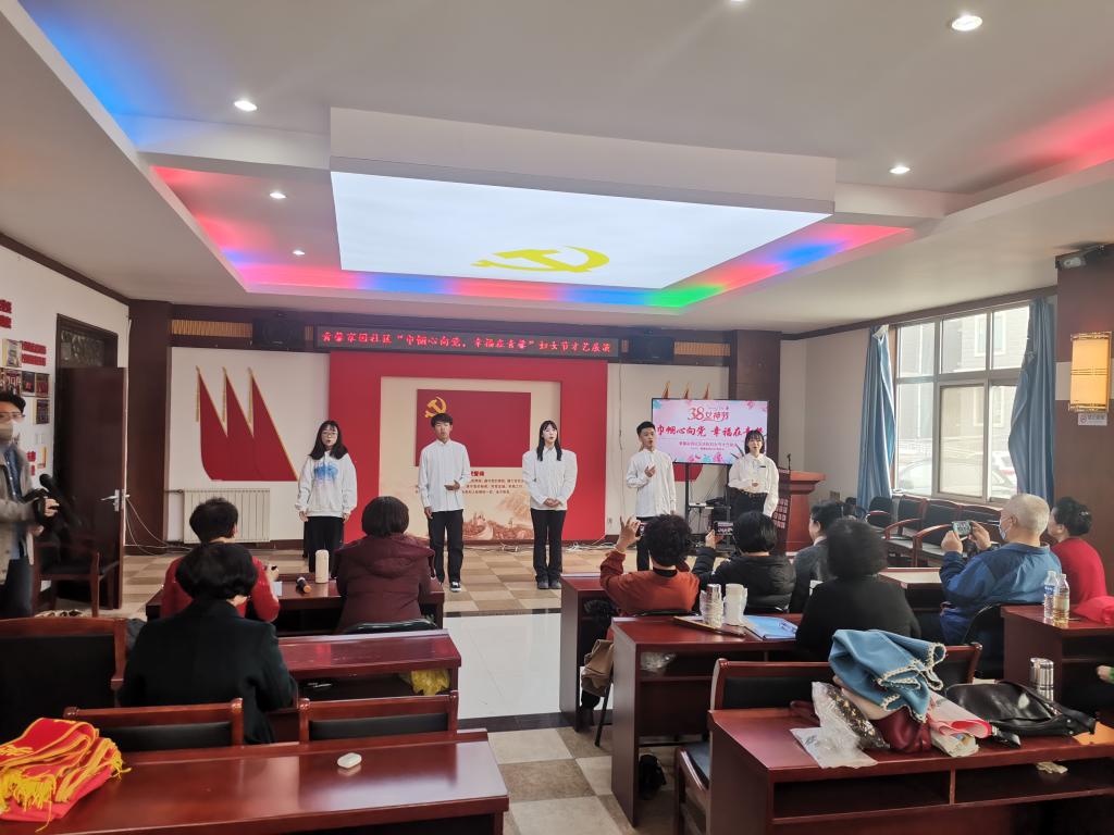 3月6日,球王会音乐学2103团支部、环境设计2201团支部参加青馨家园社区举办的“巾帼心向党,幸福在青馨”妇女节文艺展演活动,贡献了小合唱《不忘初心》、独唱《疼爱妈妈》等精彩节目,现场掌声不断,受到社区居民的热烈欢迎和高度评价。