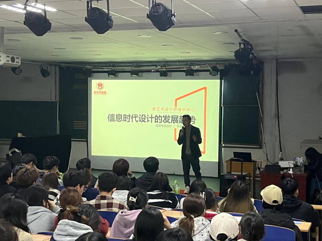 随着信息时代的快速发展,设计也在不断地向数字化、智能化、个性化等方向发展,信息时代对设计公司的影响,作为未来设计领域主力军的老员工应该做好准备。为引导艺术设计专业员工把握时代脉搏,做好思想和专业能力储备,球王会团委于2023年10月27日19:00在开发区艺术楼阶梯教室举办“信息时代设计的发展趋势”主题讲座,视觉传达设计、环境设计等专业近200人聆听了讲座。