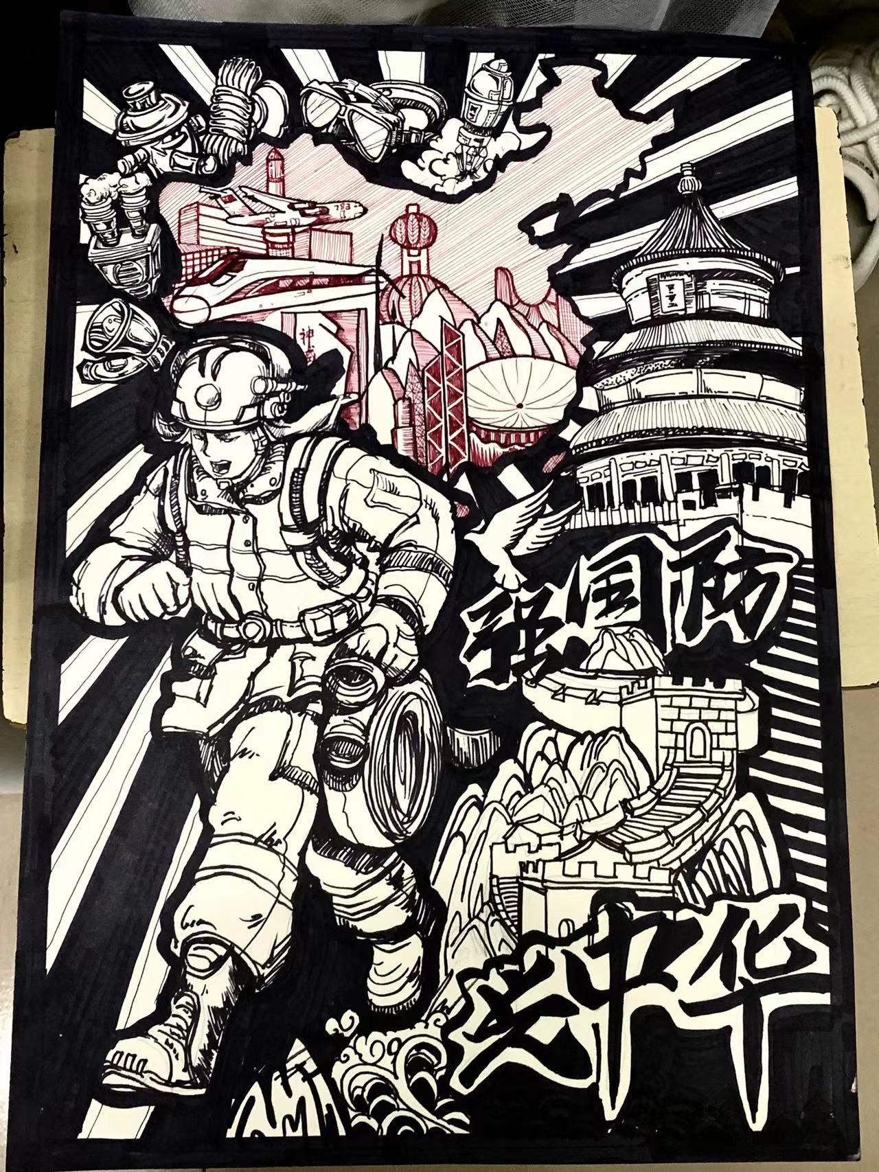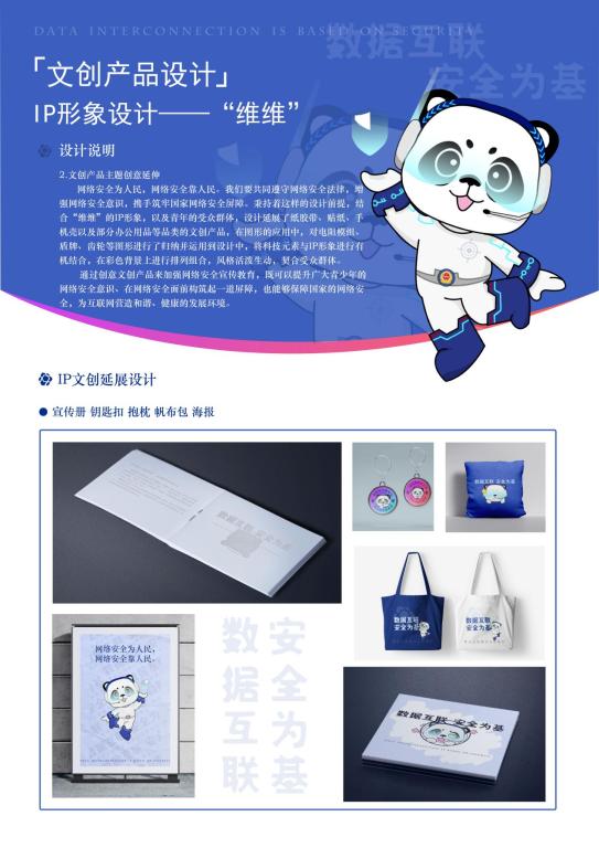比赛共收到作品30余份,有的同学绘制了奋战在国家安全保卫战线上的英雄人物,表达对于守卫国家安全工作人员的敬意;有的同学以国宝熊猫为基础设计了卡通形象,融合象征前沿与未来科技的智能眼镜、信号器等创意点,设计了胶带、贴纸、手机壳以及办公用品等文创产品,将科技元素与IP形象进行有机结合,展示对网络信息安全的思考与宣传;有的同学采用水墨画、传统戏剧脸谱等元素制作海报,展示对于国家文化安全的关注,呼吁大家自觉传承中华民族传统文化瑰宝,维护国家文化安全;有的同学绘制的主题海报色彩鲜明,意象丰富,给人以强烈的视觉冲击力,展示对于海洋安全、生物安全、粮食安全的关注与警示。同学们运用制图软件、手工绘制等多种手段,围绕总体国家安全观,以及各安全领域进行创作,展示了自己对于“国家安全”知识与理念的理解。